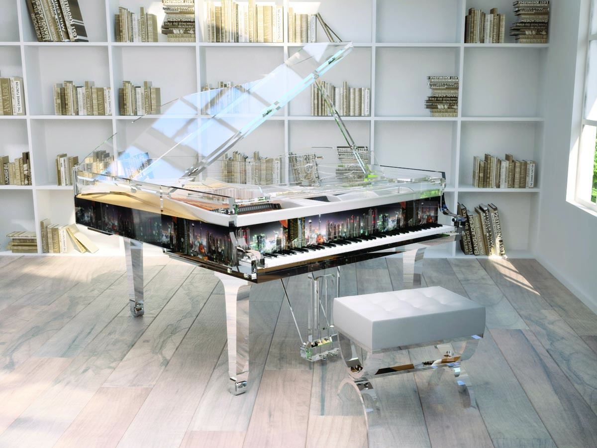 The glamorous side of elegance, a grand piano that can be customized with the most exclusive selection of high gloss polyester colors
