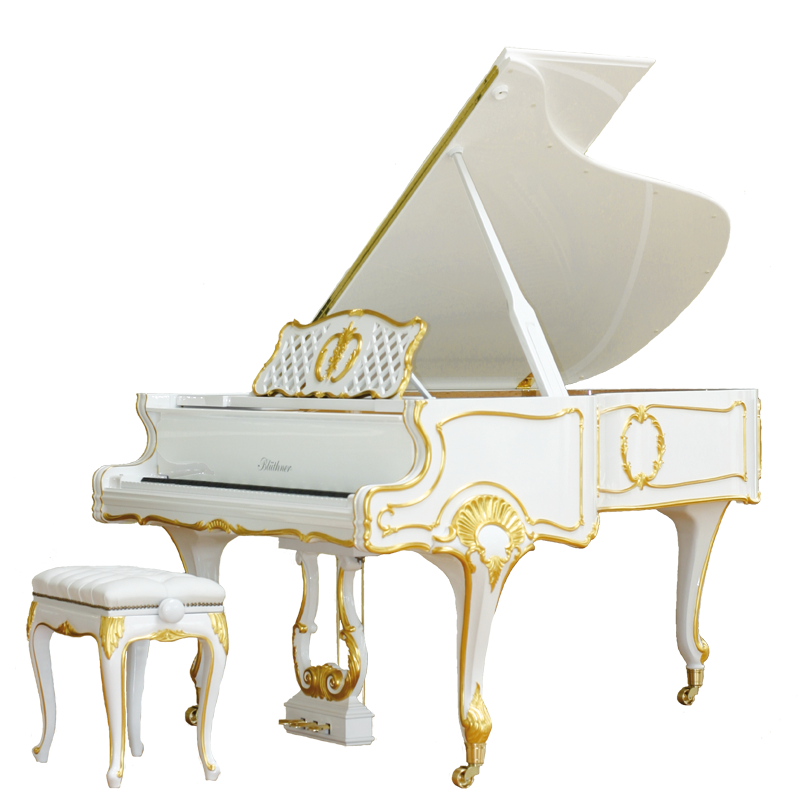 All that you see, you may also decorate. Vibrant colors, metallic finishes, and detailed artwork compliment traditional, historical, modern and even transparent design forms. Wood veneer or air brush effects can cover nearly any piece. The Blüthner craftsmen are masters of the traditional and the modern alike. From stately veneers and hand-carved marquetry to the most innovative and modern creative forms, Blüthner will help you realize your aesthetic vision, always with the world-class performance of the Blüthner Golden Tone.
