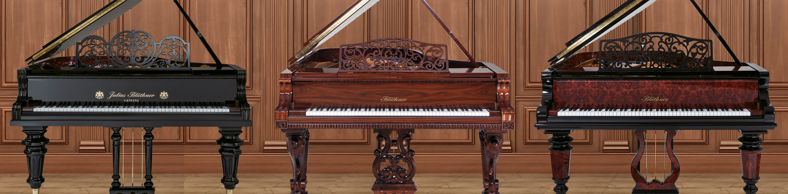 Blüthner offers a series of traditional art cases known as the Supreme Edition. These may be selected and refined with your choice of elegant wood veneer and inlays. These designs are already available for your selection or may be further customized to your specific taste. Ten supremely crafted Models of authentically ornate hand carving and aesthetic tradition.
